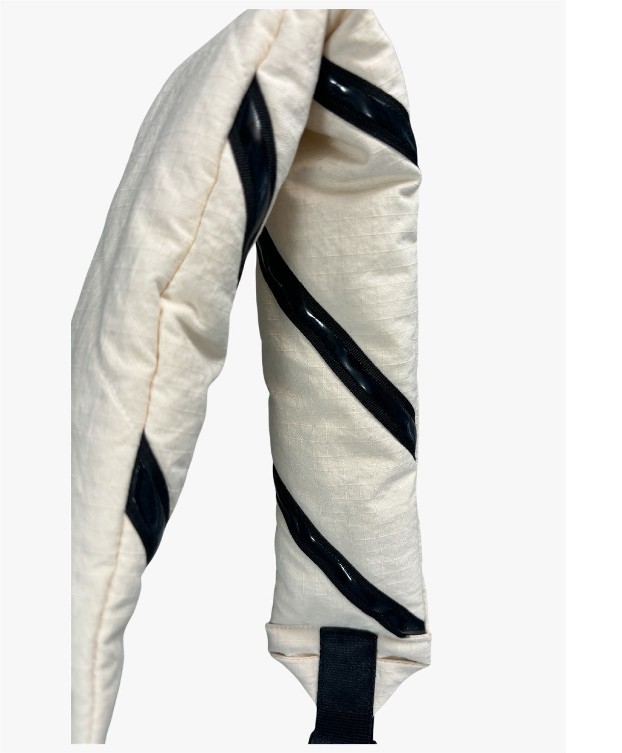 滑りを軽減する13mm幅のシリコンテープを斜めにデザイン配置。機能性とスタイリッシュなアクセントを両立しました。