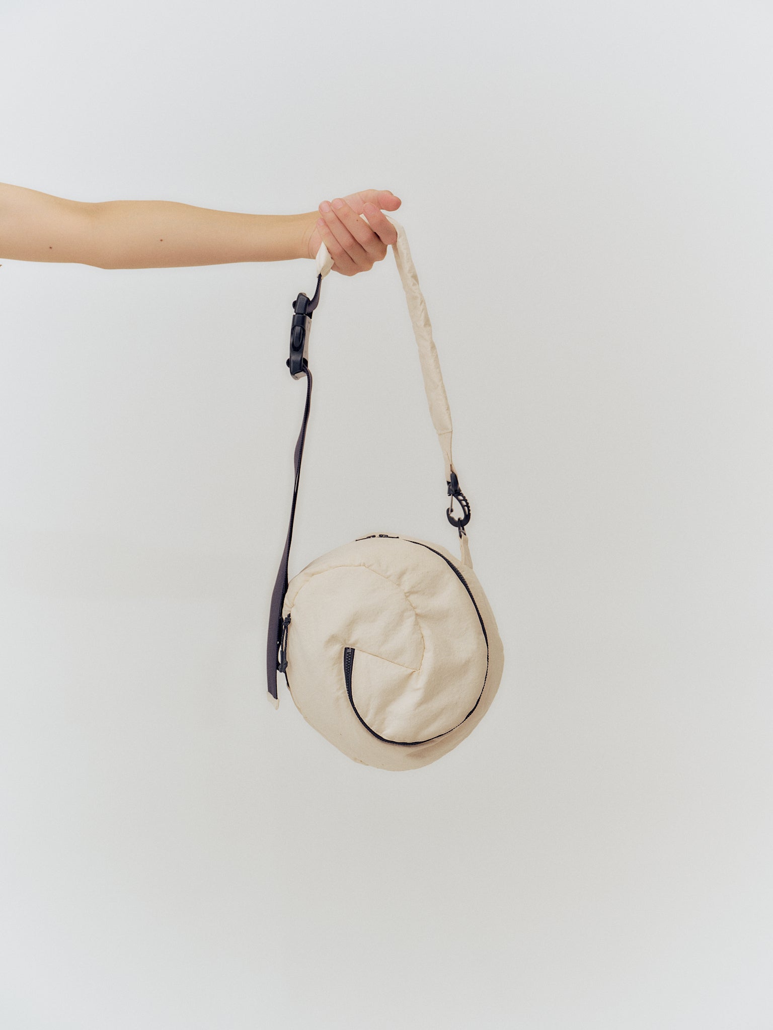 球体バッグのMEDIUMサイズは、そんな日常の「容量の悩み」を解決する直径24cmの球体バッグとして開発されました。財布、スマホ、鍵など、生活に欠かせない最低限のアイテムを美しく収納。取り外し可能な調節ストラップで、通勤時のボディバッグから、ランチタイムの手持ち、カジュアルな肩掛けまで、シーンに合わせて自在に変化します。